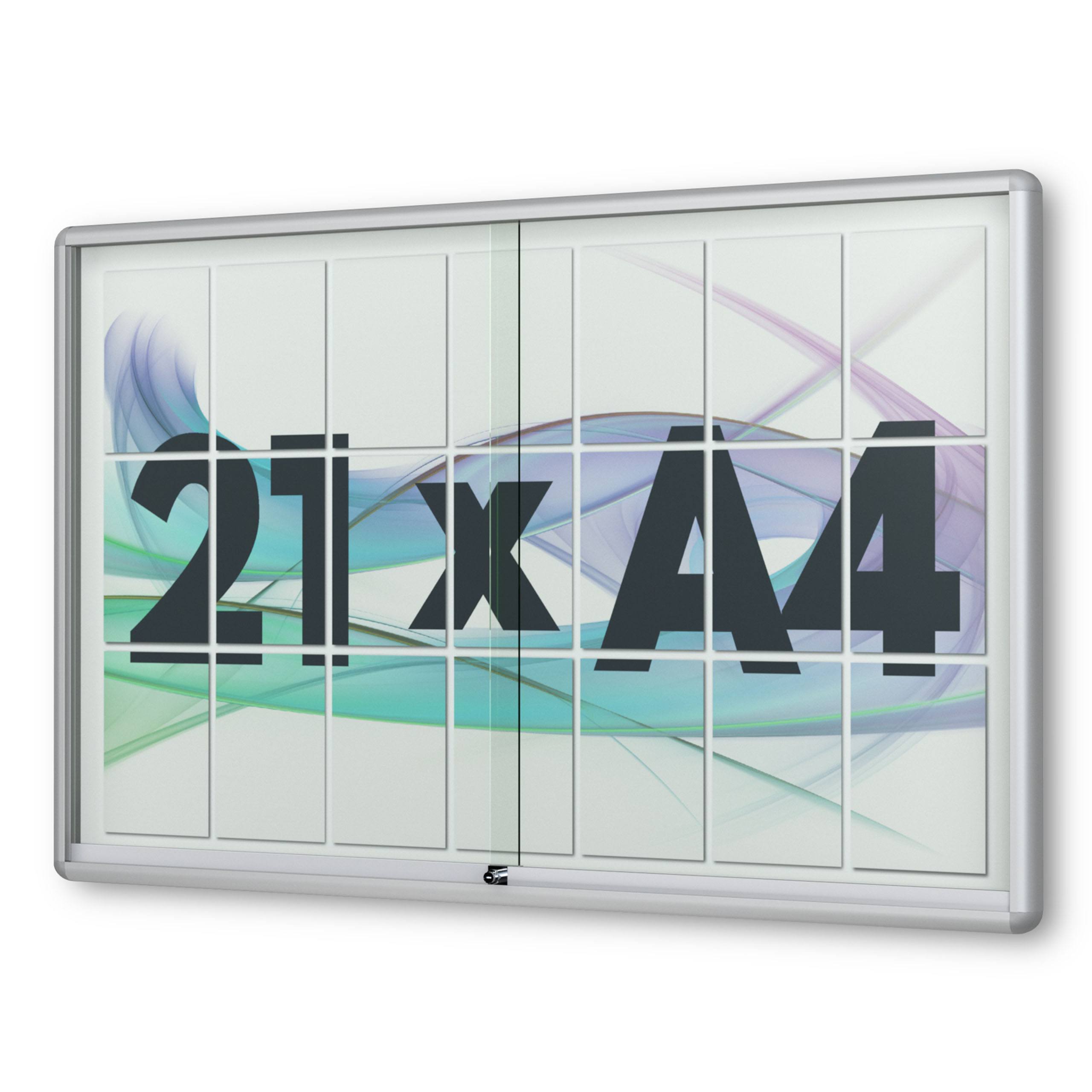21 x DIN A4 Schaukasten Moveo - "die Schulvitrine" - mit Brandschutzklasse A1 - Rollengelagerte Schiebetüren✓ abschließbar✓ ESG-Sicherheitsglas✓