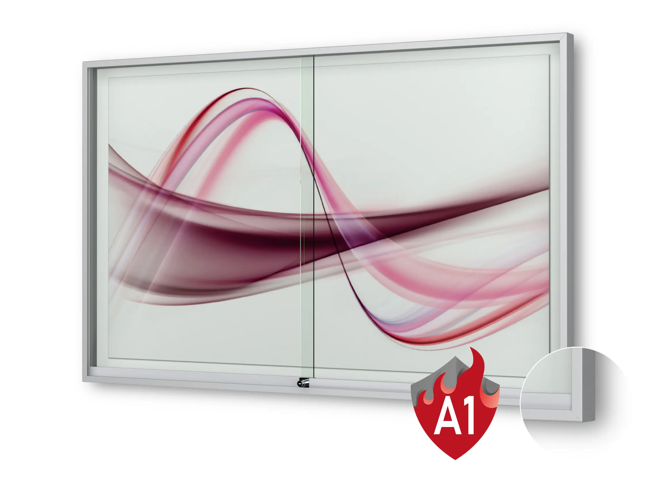 Merkmale Schaukasten: Brandschutz, Wandmontage, abschliessbar, magnetisch, mit Schiebetüren